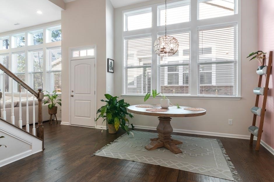 Beyond visual appeal‚ the rug’s size impacts the perceived spaciousness of the entryway. A larger rug can define the area‚ making it feel more intentional and grounded‚ particularly in open-plan layouts. Braided-Rugs.com suggests considering how the rug complements furniture and flow‚ contributing to a cohesive and inviting entrance.