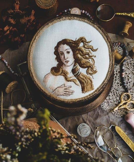 Thread selection is vital for achieving the desired aesthetic in wedding cross stitch patterns. Choose high-quality embroidery floss, such as DMC or Anchor, for vibrant and durable results. Opt for classic white, cream, or pastel shades to match traditional wedding themes. For modern designs, metallic or glitter threads can add a touch of elegance. Blending filament threads create subtle shimmer, enhancing romantic motifs. Select threads that complement your fabric choice to ensure visibility and texture. Consider using variegated threads for gradient effects or monochromatic schemes for simplicity. Always check thread color charts provided in free PDF patterns for accuracy. For beginners, start with basic colors and gradually experiment with specialty threads. Proper thread selection elevates the beauty of your wedding cross stitch, making it a timeless keepsake. Ensure threads are well-organized to maintain efficiency during stitching.