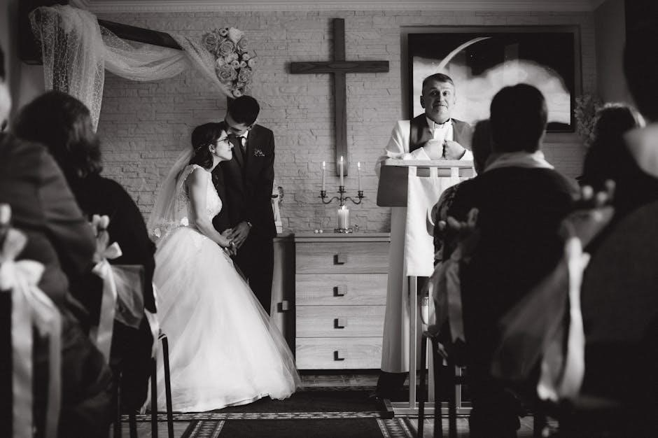 Romantic love-themed cross stitch designs are perfect for capturing the essence of a wedding. These patterns often feature heart motifs, Cupids, and floral arrangements, creating a whimsical and sentimental atmosphere. Many free PDF downloads include elegant scripts with romantic quotes or the couple’s names, adding a personal touch. Subtle details like intertwined rings or doves further emphasize the theme of love and commitment. These designs are ideal for creating personalized wedding gifts, such as samplers or decorative wall art. With their timeless appeal, romantic love-themed patterns are a popular choice for celebrating weddings and anniversaries. They are also versatile, suitable for both traditional and modern wedding aesthetics. Whether stitched on fabric or canvas, these designs bring warmth and charm to any celebration of love.